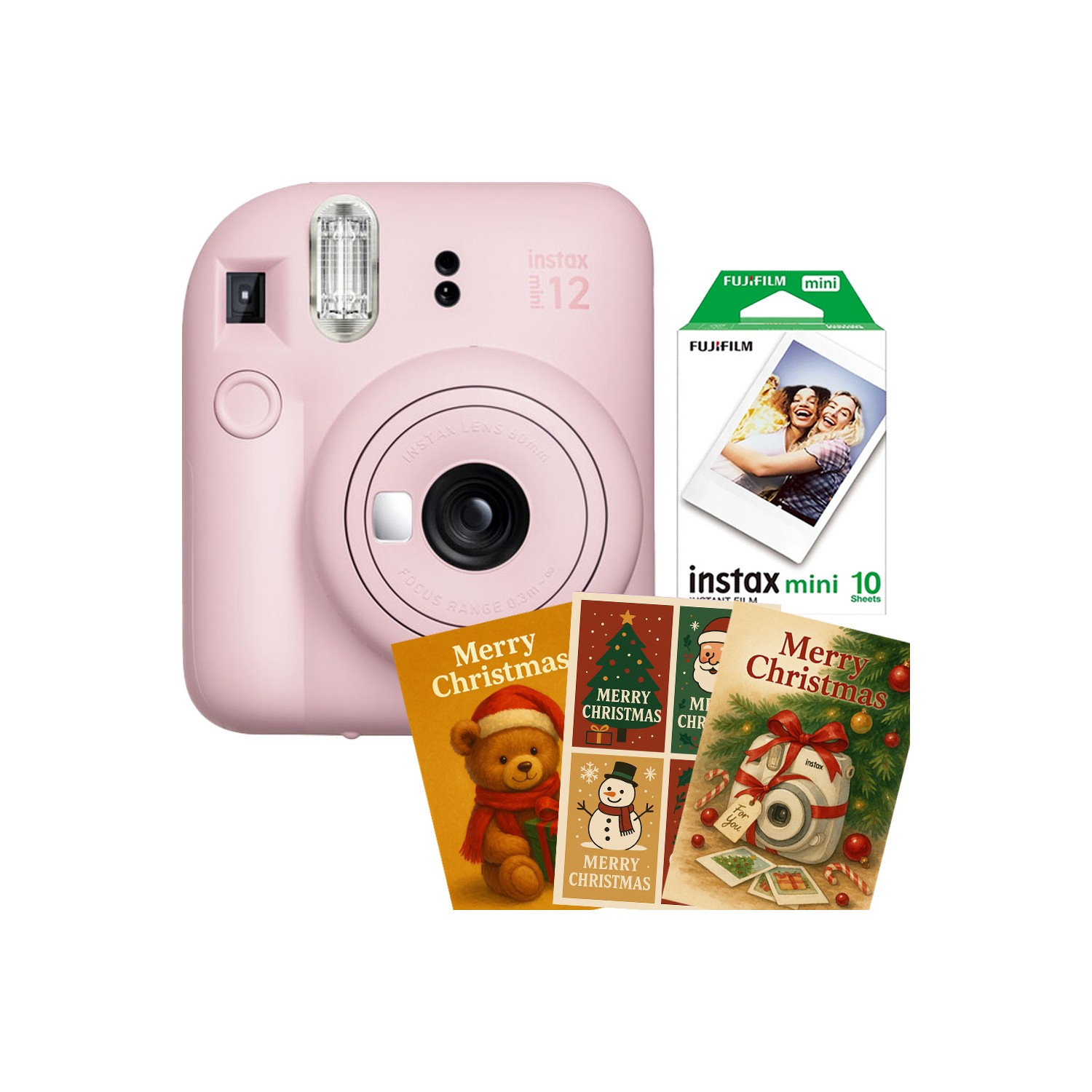 Set cadou Crăciun cu Instax Mini 12 alb, film și 3 felicitări festive....